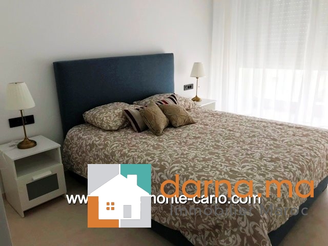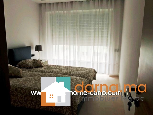 Location appartement de standing meublé au haut Agdal Rabat appartement ensoleillée entièrement et totalement meublé avec goût style européen dans une résidence de très haut standing avec ascenseurs et garage, très bien situé idéalement situé. Proximité dela forêt Hilton, des écoles françaises. Logement moderne et offrant un grand niveau de confortappartement au 6ème étage avec climatisation et chauffage centralisés composé d’un double salon donnant sur une grande terrasse, une cuisine équipée, salle d’eau d’invité, 2chambres dont une chambre parentale avec salle de bain et dressing, deuxième salle de bain,