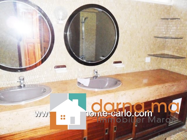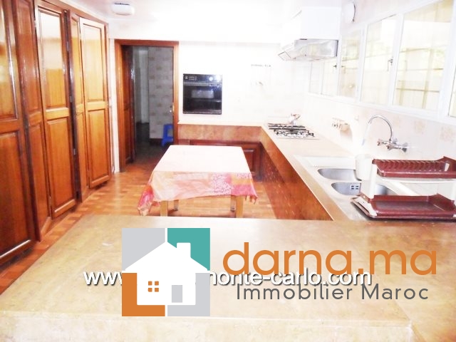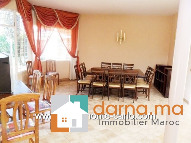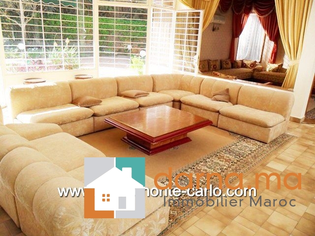 A louer belle villa plain pied construite sur un terrain de 1900m² à Souissi ensoleillée et très bien meublée, climatiseurs et chauffage dans toutes les pièces,bien sécurisée et située dans un quartier chique de Rabat comprenant 2 salon , chambre parental avec dressing et salle de bain, 3chambres à coucher, deux salles de bain, terrasses, 3salons, un séjour,  WC des invités, une cuisine bien équipée, buanderie, 2chambre de personnel avec douche, débarras, logement de gardien, un jardin bien entretenu avec puit et garage,