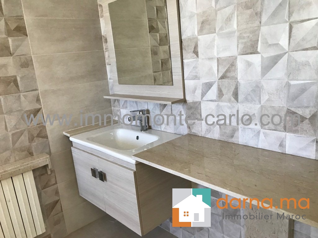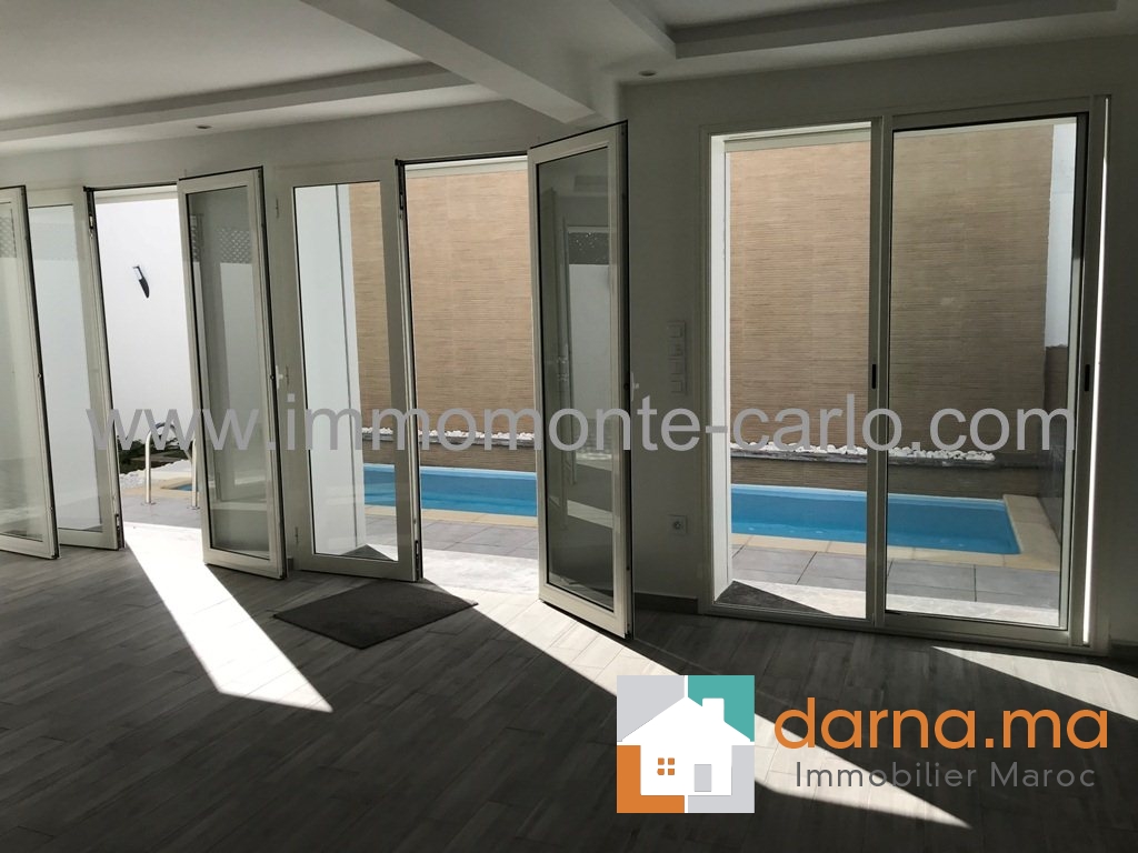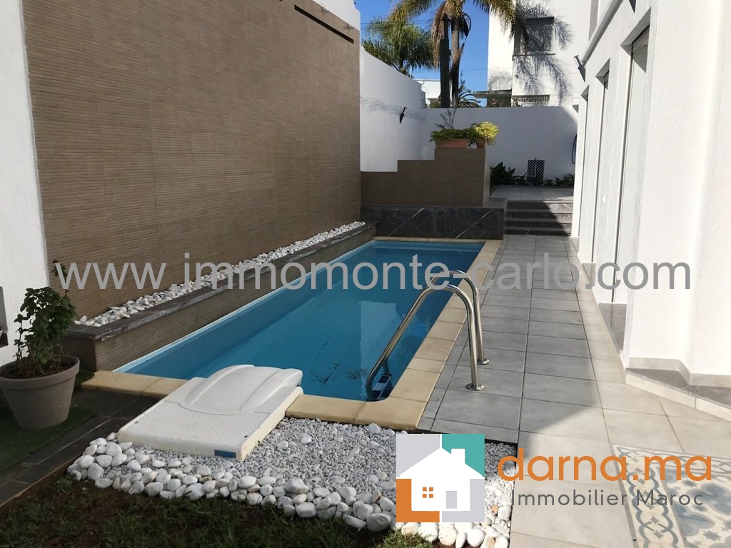 Location Rabat villa de très haute standing neuve moderne avec piscine, très bien située et bien sécurisée, avec chauffage central , climatisation, composée de double salons cheminée donnant sur la piscine et belle cascade, salle d’eau des invités,  4 chambres à coucher avec 3 salles de bain dont une suite parentale avec vue panoramique sur le Bouregreg et l'océan avec terrasse dressing et salle de bain, cuisine moderne bien équipé, buanderie, un grand garage,  logement de personnel …Pour plus d’informations ou visite n’hésitez pas de contacter notre agence immobilière Immo Monte-Carlo au N° de tél: +212 (0)6 61 46 40 37 /+212 (0)6 61 21 25 47 ou Tél/Fax:+212 (0) 537 755 043 ou par E-mail : Cette adresse e-mail est protégée contre les robots spammeurs. Vous devez activer le JavaScript pour la visualiser. ou rendez-vous au 15.Av, Al Abtal N°4, Agdal RABAT MAROC.