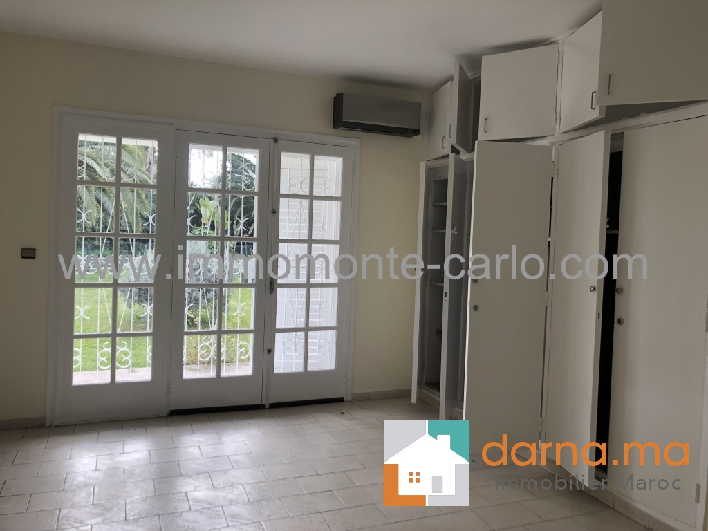 Location à Rabat villa de plain pied avec piscine sur un grand jardin à  Souissi,  villa sans vis-à-vis et de nombreuses ouvertures sur une belle grande terrasse donnant  le jardin et la piscine  exposée plein sud, avec chauffage central et climatisation dans toutes les pièces, composée de 4chambres dont un Master room avec dressing, 3salles de bain, 3 salons avec coin  cheminée, séjour, salle d’eau des invités, grande terrasse, cuisine, buanderie, débarras, logement de personnel, puit, grand garage…   Pour plus d’informations ou visite n’hésitez pas de contacter notre agence immobilière Immo Monte-Carlo au N° de tél: +212661464037/ +212661212547ou Tél/Fax: +212537755043 ou par E-mail : Cette adresse e-mail est protégée contre les robots spammeurs. Vous devez activer le JavaScript pour la visualiser. ou visitez notre site www.immomonte-carlo.com ou  rendez-vous au 15, Av. Al Abtal N°4, Agdal RABAT MAROC.