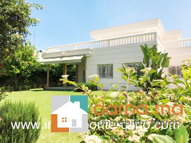 À louer villa standing  lumineuse et à Rabat au quartier Souissi.  Dans un environnement privilégié, villa avec un très joli  jardin bien entretenu fleuri, idéalement située dans un quartier résidentiel,  bénéficiant de prestations hauts de gamme, beaux volumes aux grandes baies vitrées et superbe vue sur   le jardin, une grande terrasse , , climatisations réversibles dans toute la maison, grand garage automatique, panneaux solaires pour l’eau chaud, villa composée au :