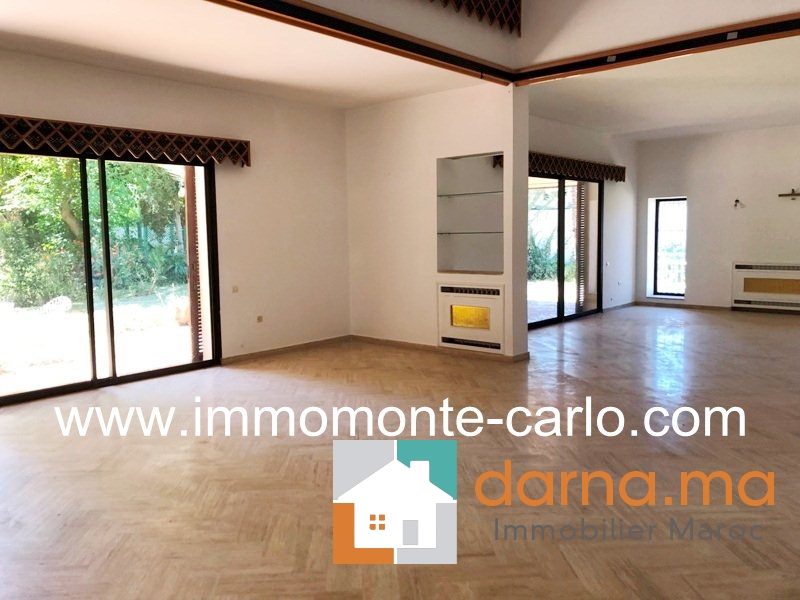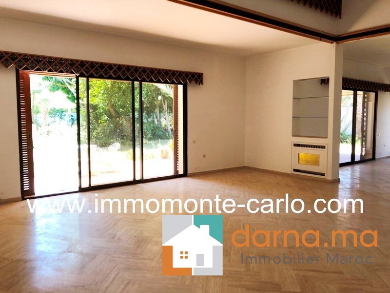 À louer Rabat villa située dans une rue calme à Souissi,  Cette propriété est idéale pour ceux qui cherchent la proximité,  qui dispose du chauffage central et de la piscine et nombreuses ouvertures sur une belle grande terrasse donnant  le jardin, la  piscine  exposée plein sud, jardin avec puit, grand garage,  comprenant :