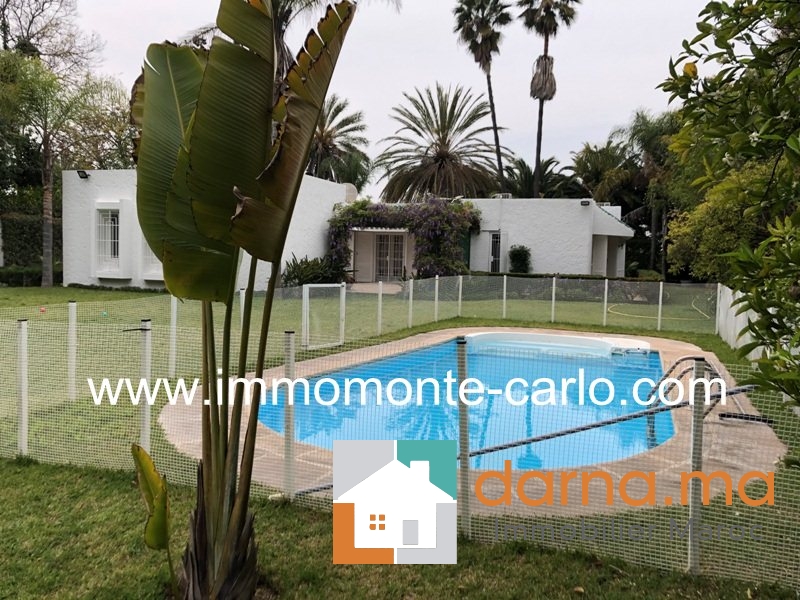 Jolie villa de plain pied répartie sur un seul étage située dans une rue calme à Souissi,  cette villa  dispose du chauffage central et de la piscine et nombreuses ouvertures sur des terrasses donnant sur le jardin et la piscine  exposée plein sud,  composé d’une grande réception avec cheminée, une salle d’eau des invités neuve, une salle à manger, une cuisine équipée ,un séjour qui peut être une chambre d’amis,chambre parental avec dressing et salle de bain neuve, 3 chambres enfants avec des placards et une salle de bain neuve. De plus, à l’extérieur, il y a un garage automatique, espace de rangement et un logement du personnel, un beau jardin avec puit.